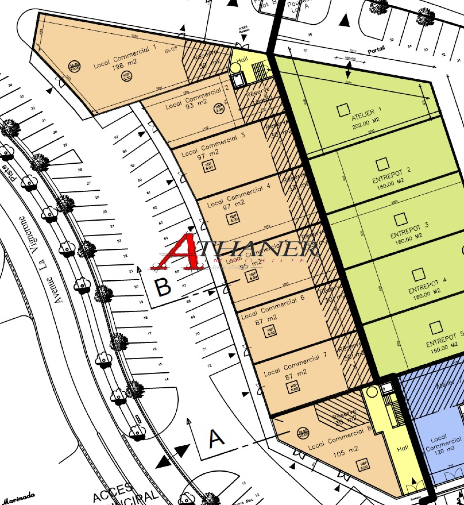 Dans un complexe commercial, cellule à louer en rez de chaussée ou 1er étage.