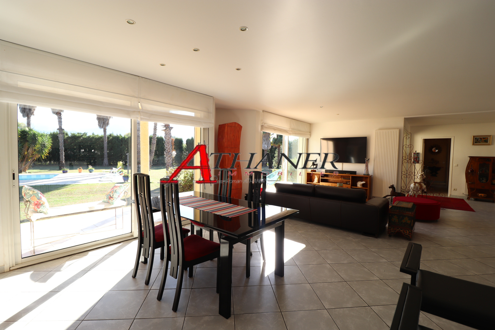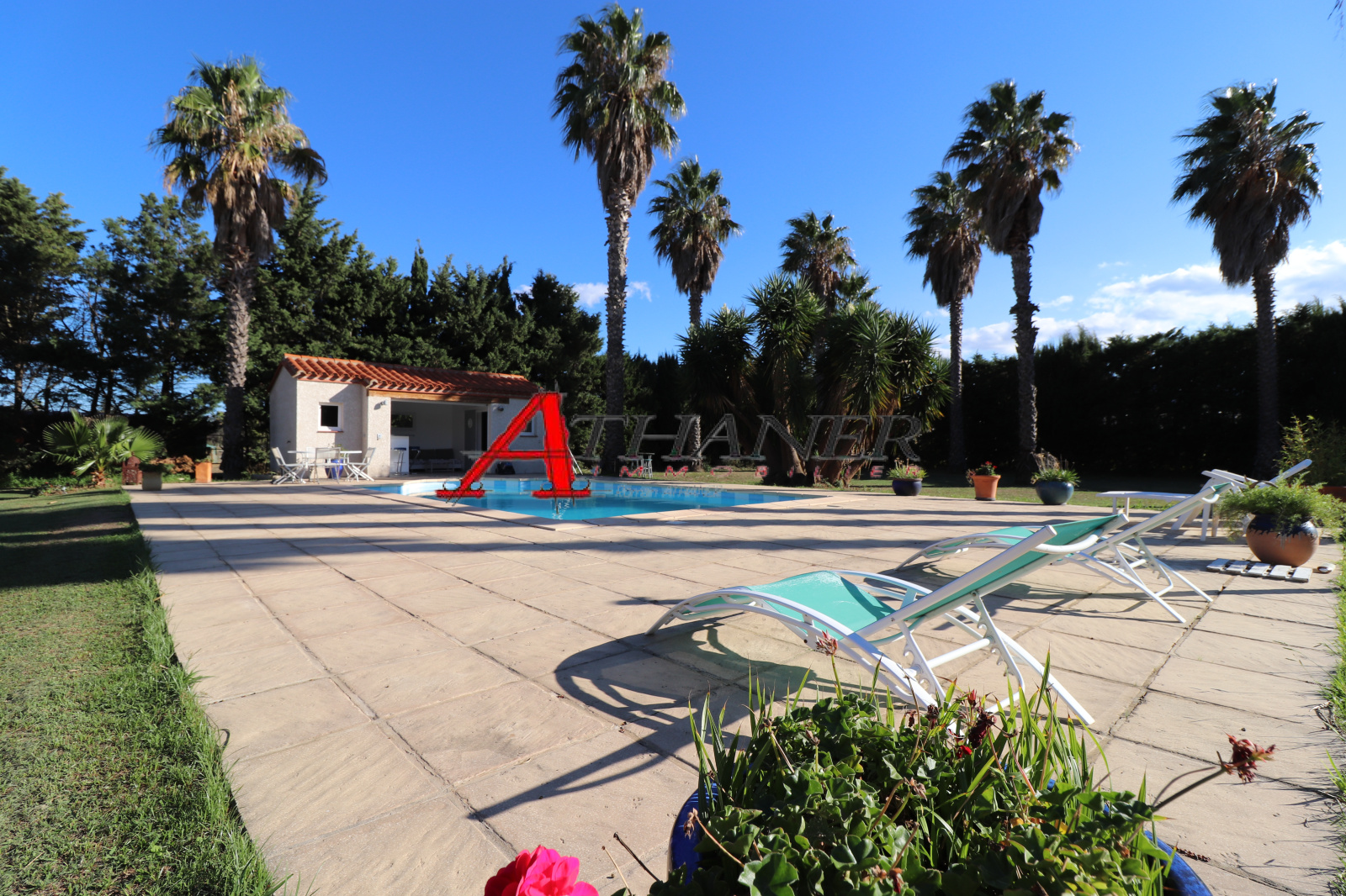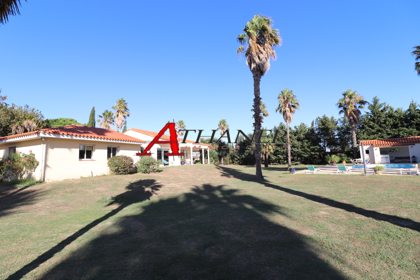 Belle piscine avec un traitement au sel, pool housse avec sanitaires, double Garage et nombreux stationnements.