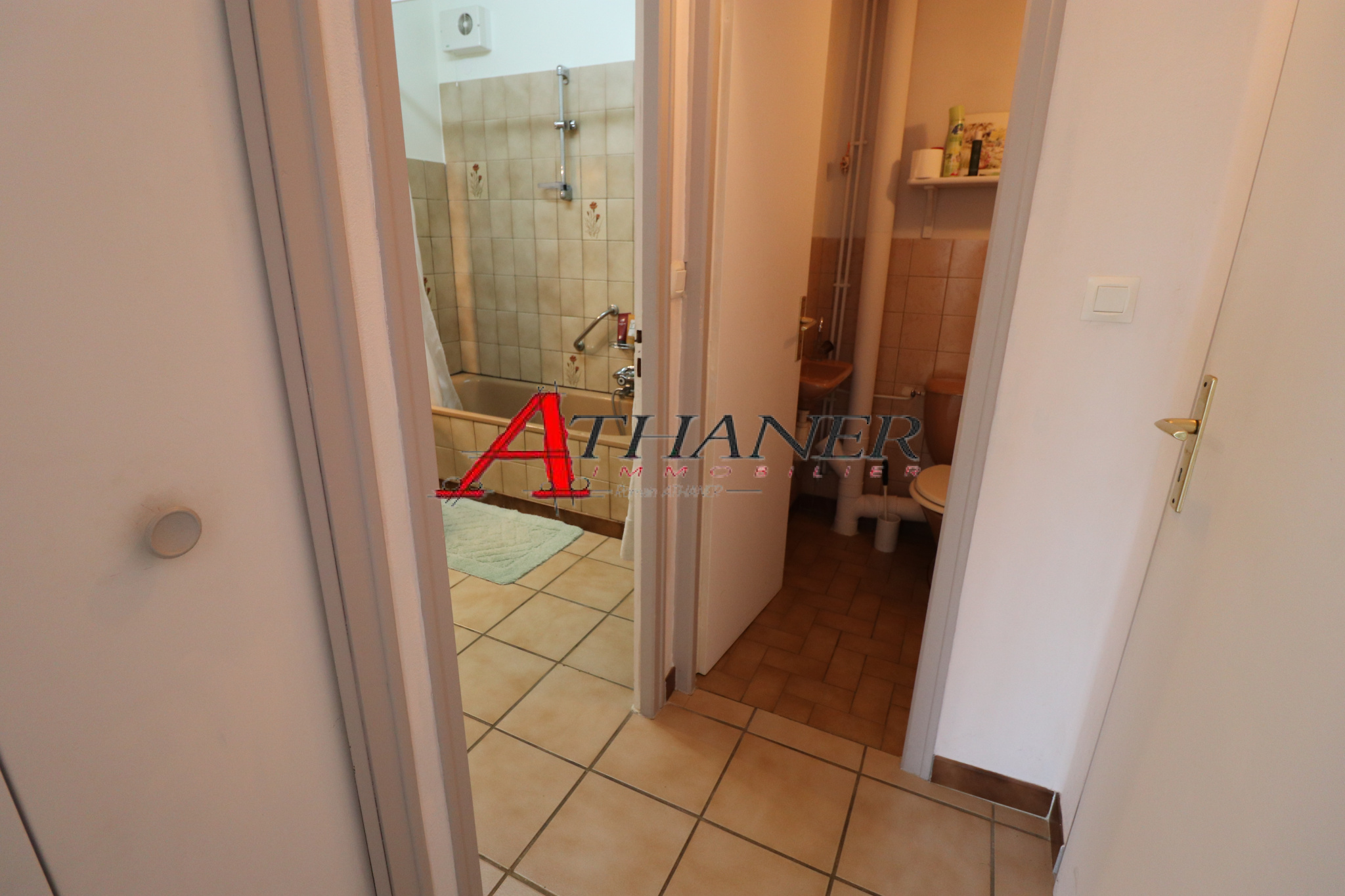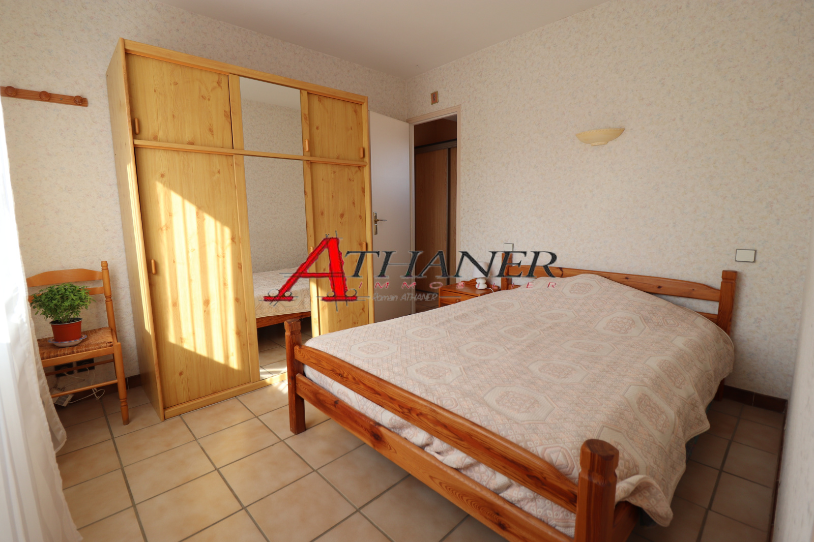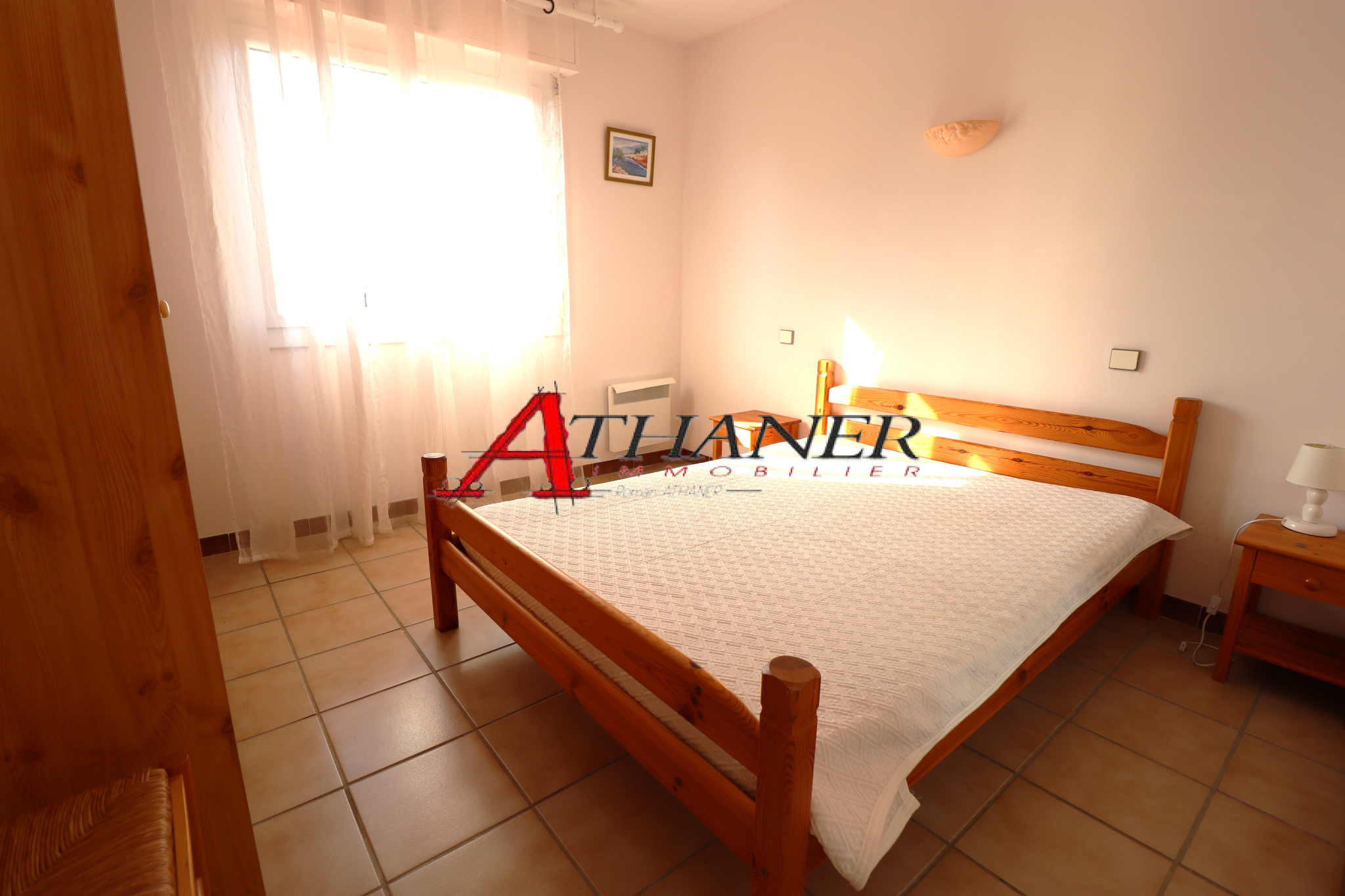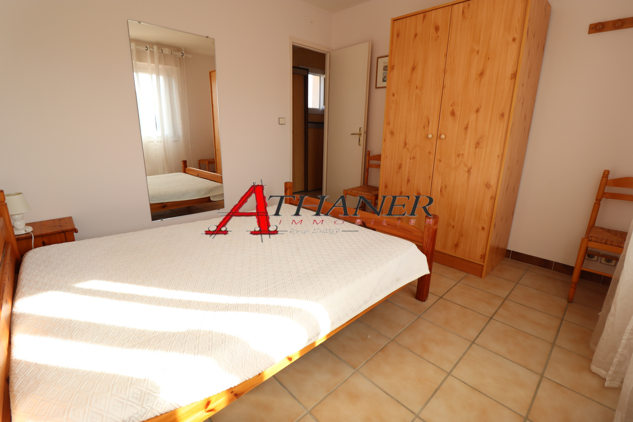 En rez de chaussée: entrée, séjour donnant sur terrasse expo sud, cuisine individuelle, chambre avec placard, salle de bain, WC, véranda, garage.