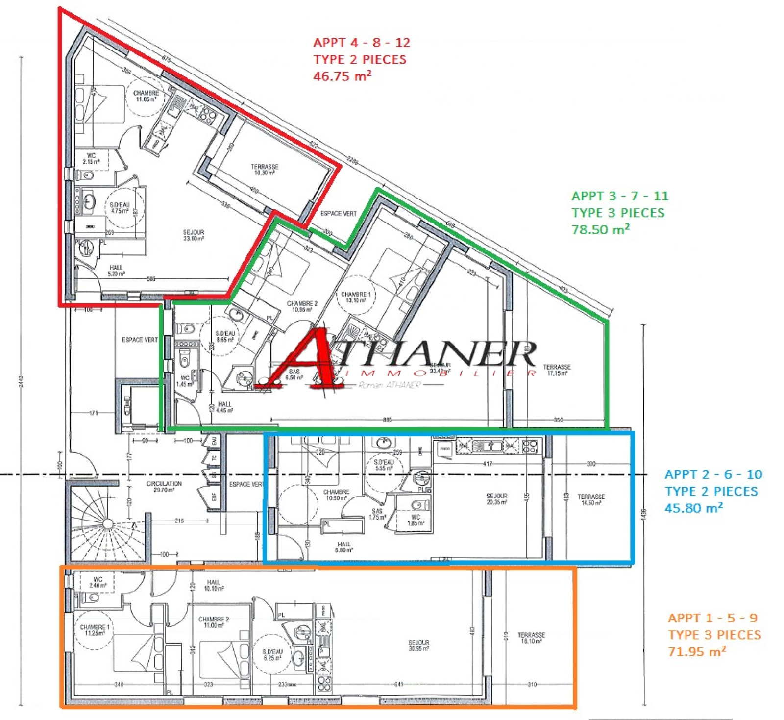 Direct Promoteur - Une nouvelle résidence de standing à Argeles sur mer, idéalement situé avec son emplacement privilégié « Secteur mairie, Rue Cami Trencat », nous vous proposons dans un futur très proche, un petit ensemble immobilier de 12 appartements sur 2 étages avec ascenseur. Du Type 2 Pièces au Type 3 Pièces. Habitation entièrement équipé de la climatisation, de volets roulants électriques, d'un chauffe-eau thermodynamique et de finitions de standing. Au 1er Etage, Appartement traversant de Type 3 Pièces totalisant environ 77.50m² habitable. Terrasse exposée Sud de 17m² Parkings sécurisés et privatifs - Normes PMR Contactez-nous à l'Agence Athaner Immobilier pour plus de renseignements. Nos bureaux sont en face du centre de lavage Éléphant Bleu de la Zone d'Activité 24, Av des flamants Roses 66700 Argelès sur Mer - 04 68 95 62 84