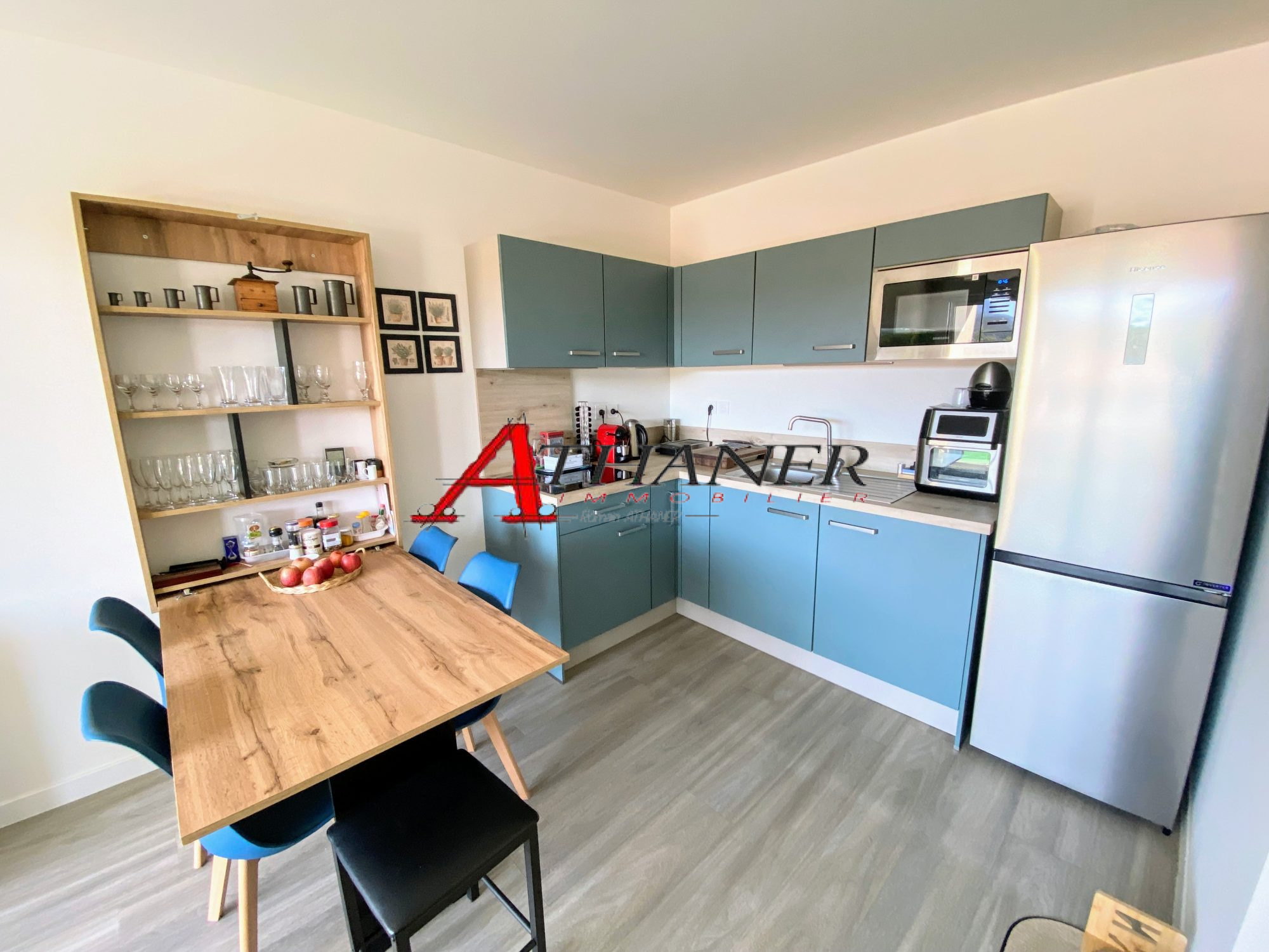 L’appartement propose une pièce de vie agréable et lumineuse, prolongée par une spacieuse terrasse exposée Sud, idéale pour profiter pleinement de l’ensoleillement. La cuisine ouverte, entièrement équipée, s’intègre parfaitement à l’espace de vie et invite à des moments conviviaux.