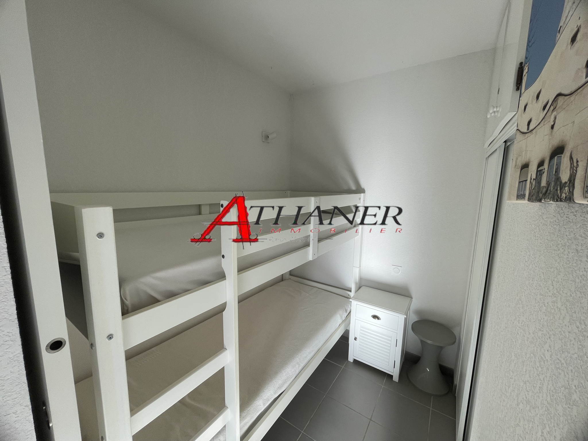 Cet appartement de 6 couchages au total est vendu entièrement meublé et équipé avec une cuisine ouverte, un séjour/cuisine, une chambre avec placards et une chambre cabine avec lits superposés. Salle de bain et WC séparé.