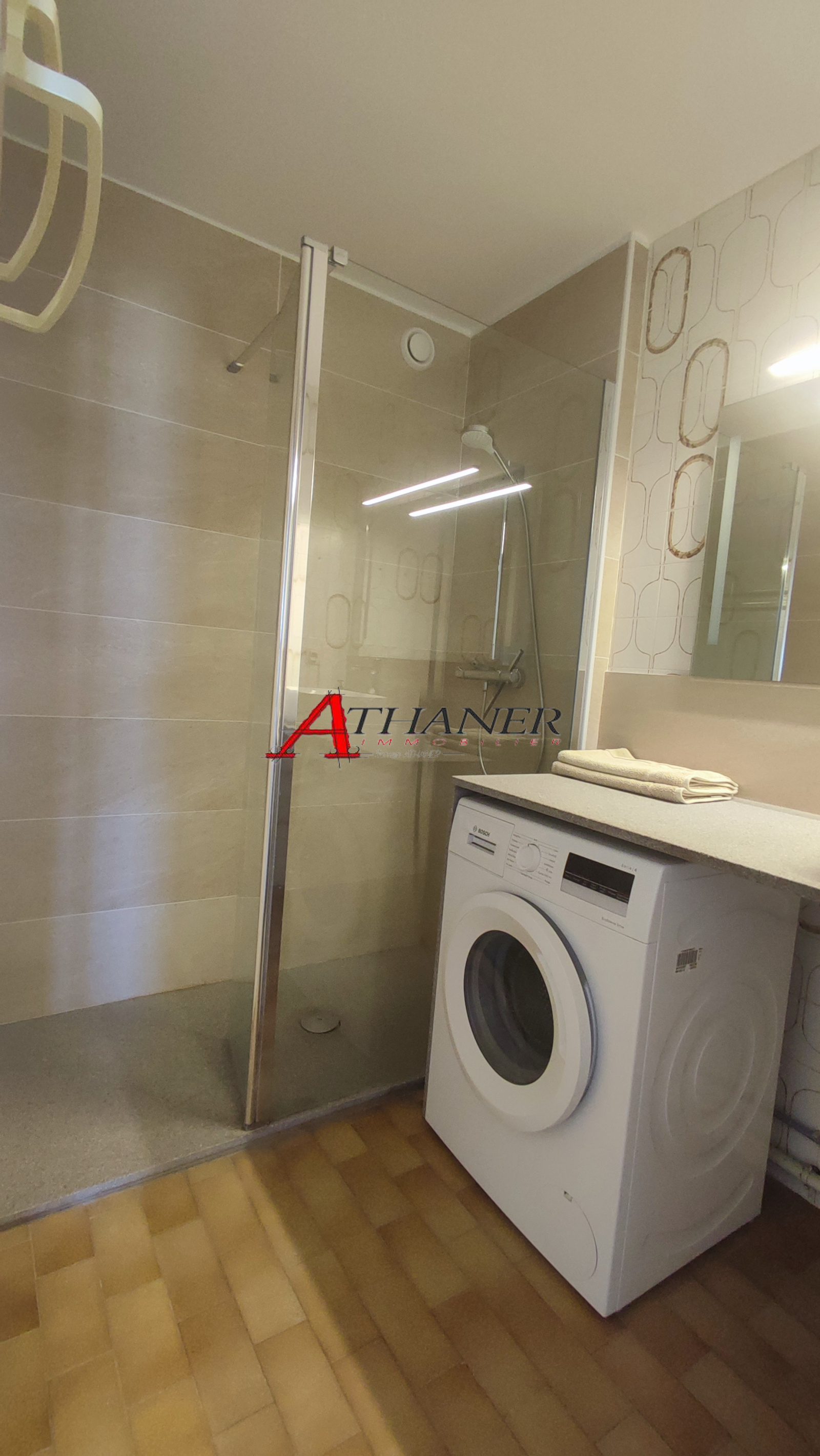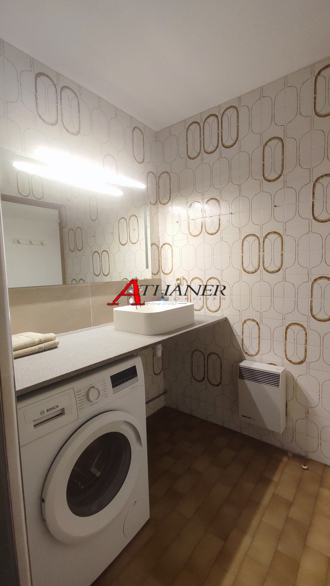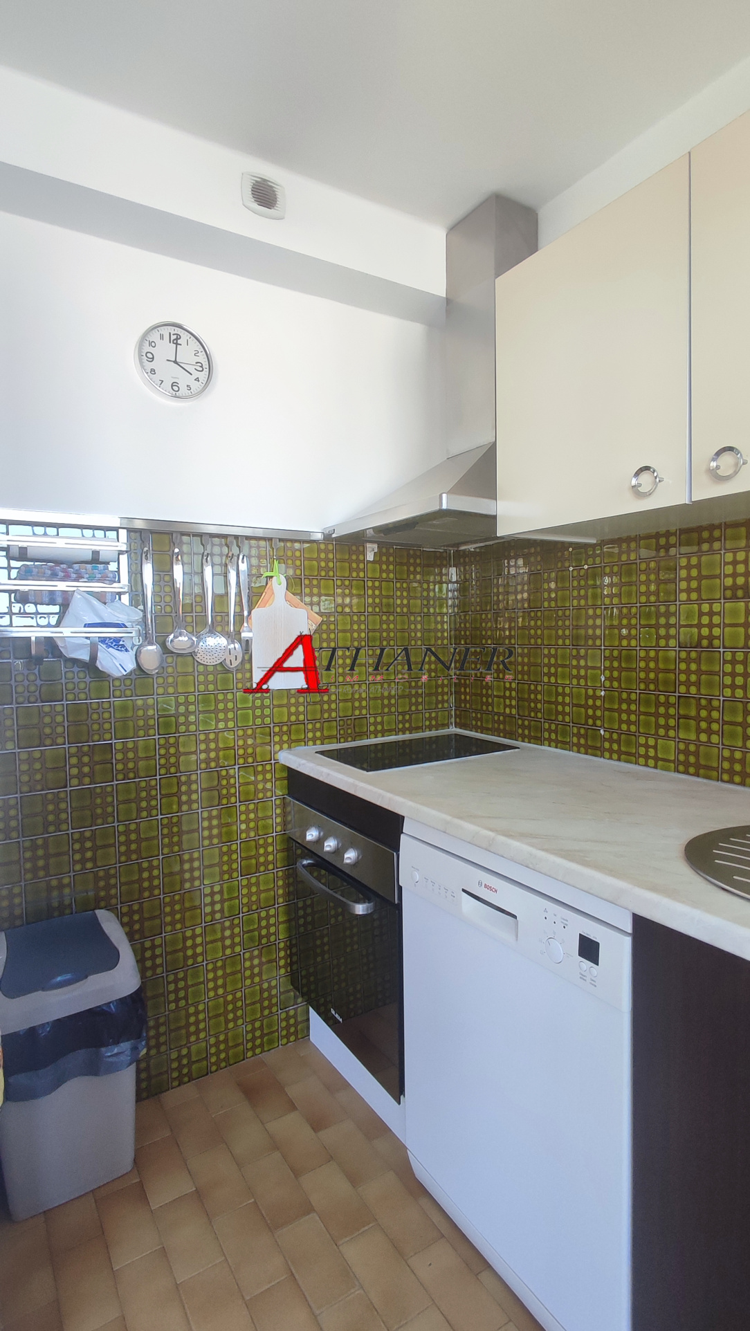 L'appartement est très bien entretenu, il est vendu meublé si besoin, il s'agence de la façon suivante : une hall d'entrée avec un grand placard desservant d'un côté le coin nuit avec 2 chambres (dont une avec placard) , la salle d'eau et le w.c.indépendant. De l'autre côté, le séjour avec espace cuisine + loggia (3m²) et terrasse (6m²).