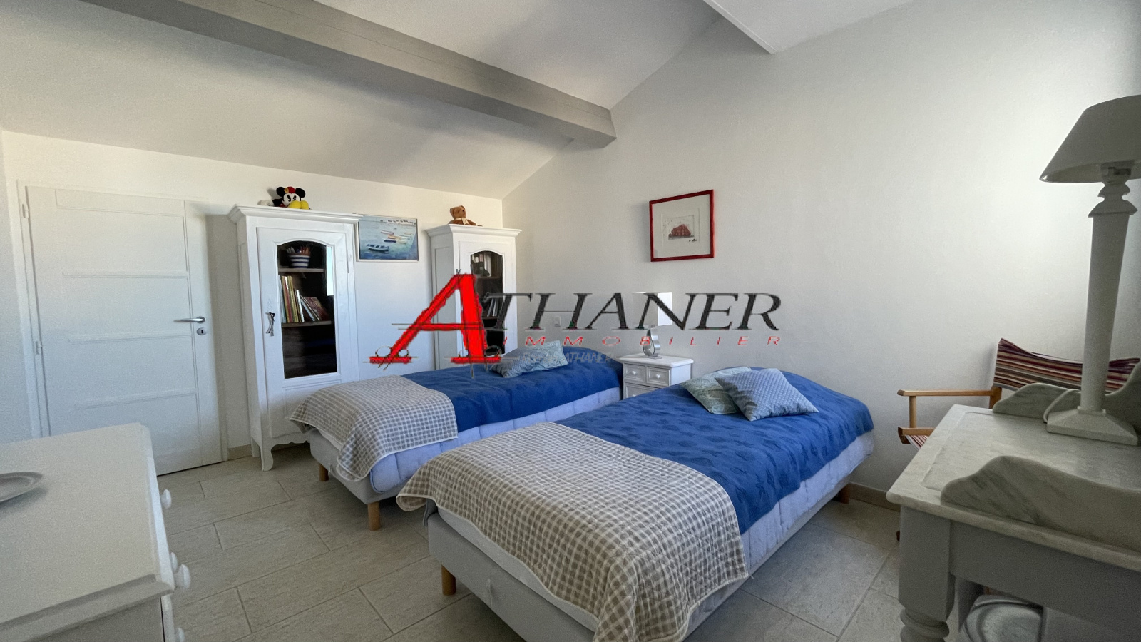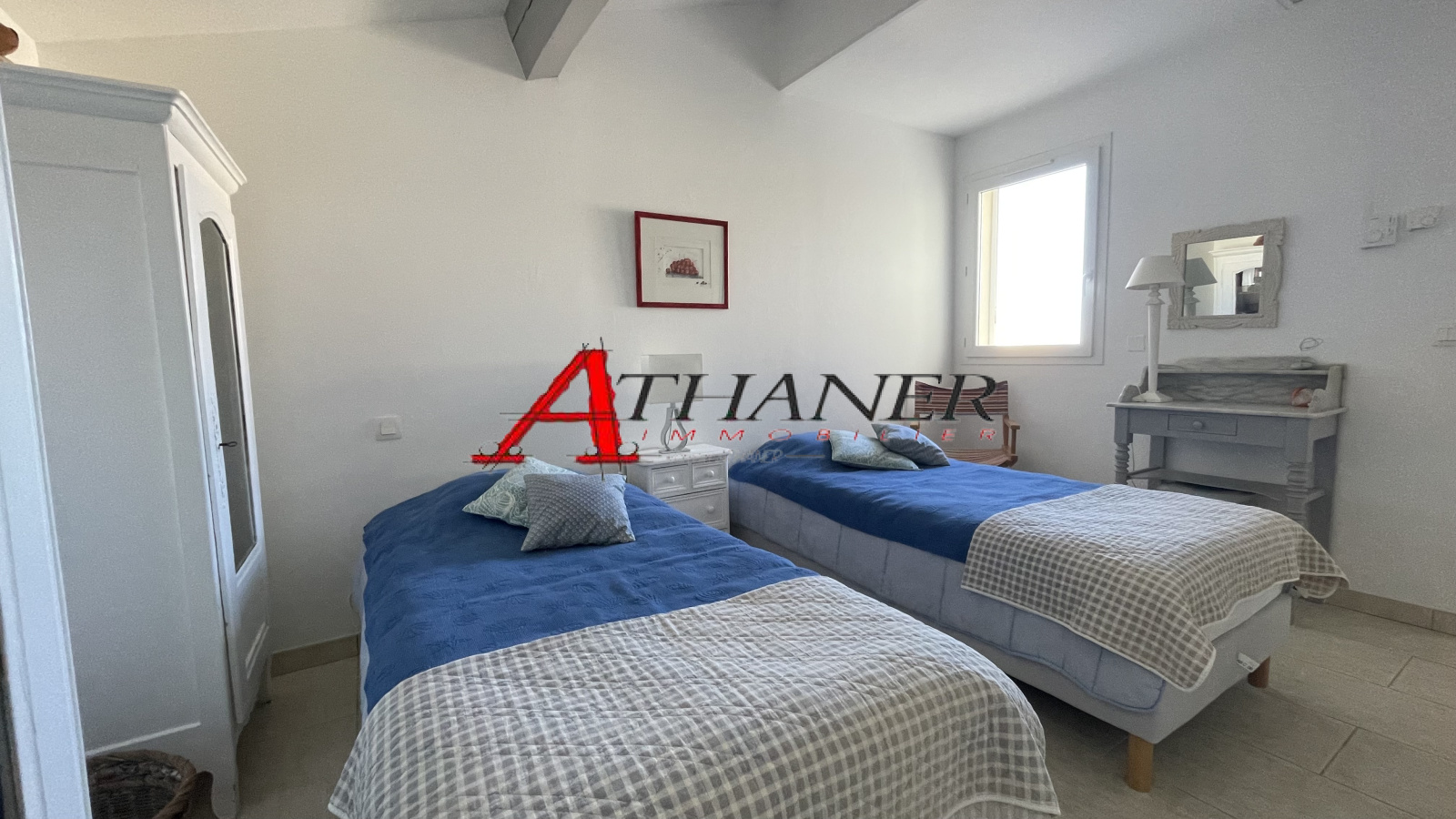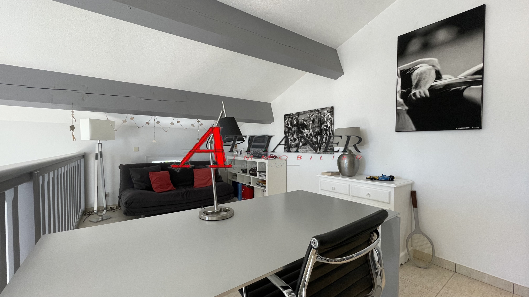 À l’étage, deux belles chambres avec rangements, une salle d’eau, une mezzanine ouverte idéale pour un bureau ou un espace détente, et une solarium pour profiter des soirées d’été.