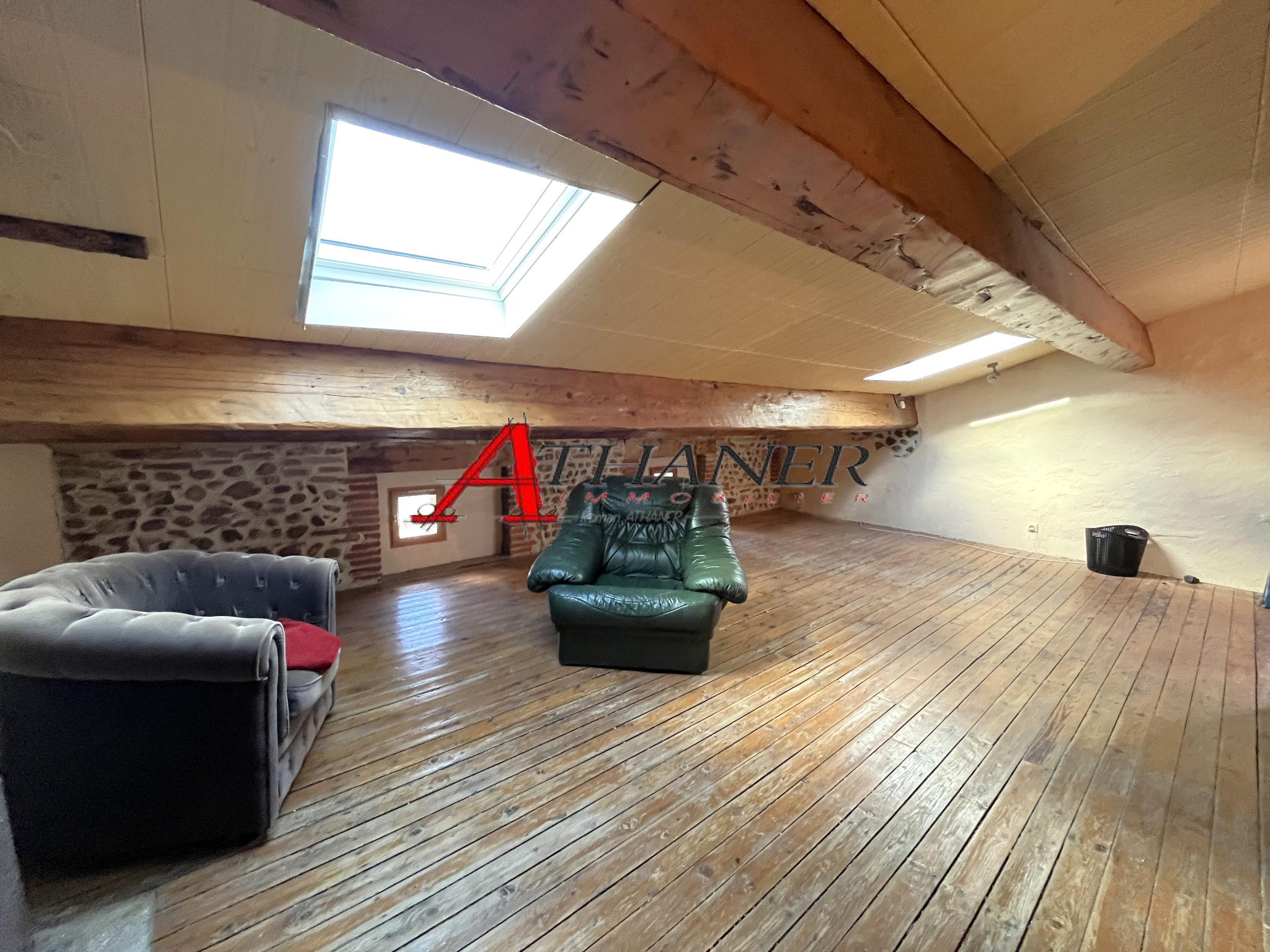 Au premier étage, un bel espace pouvant être aménagé selon vos envies (bureau, bibliothèque…) ainsi que deux chambres avec placards et un toilette.